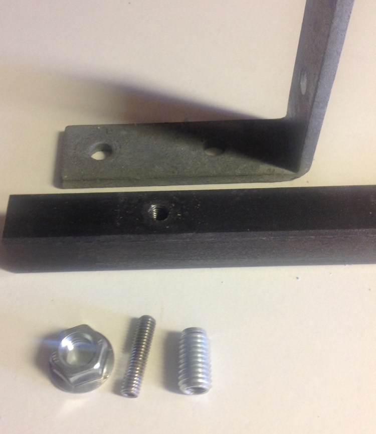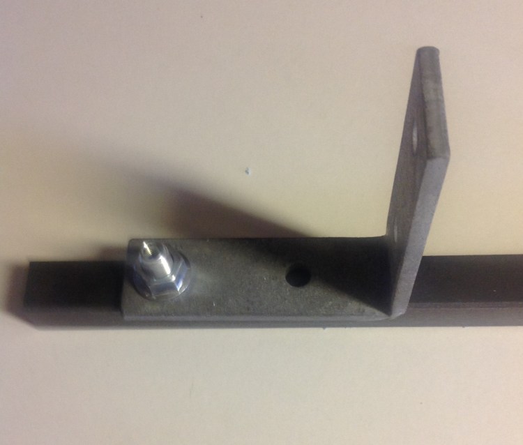 B. Metal fitting clamped to a steel beam between a serrated flange nut (M10) with connector inside, and a tapped fixing point in the steel beam